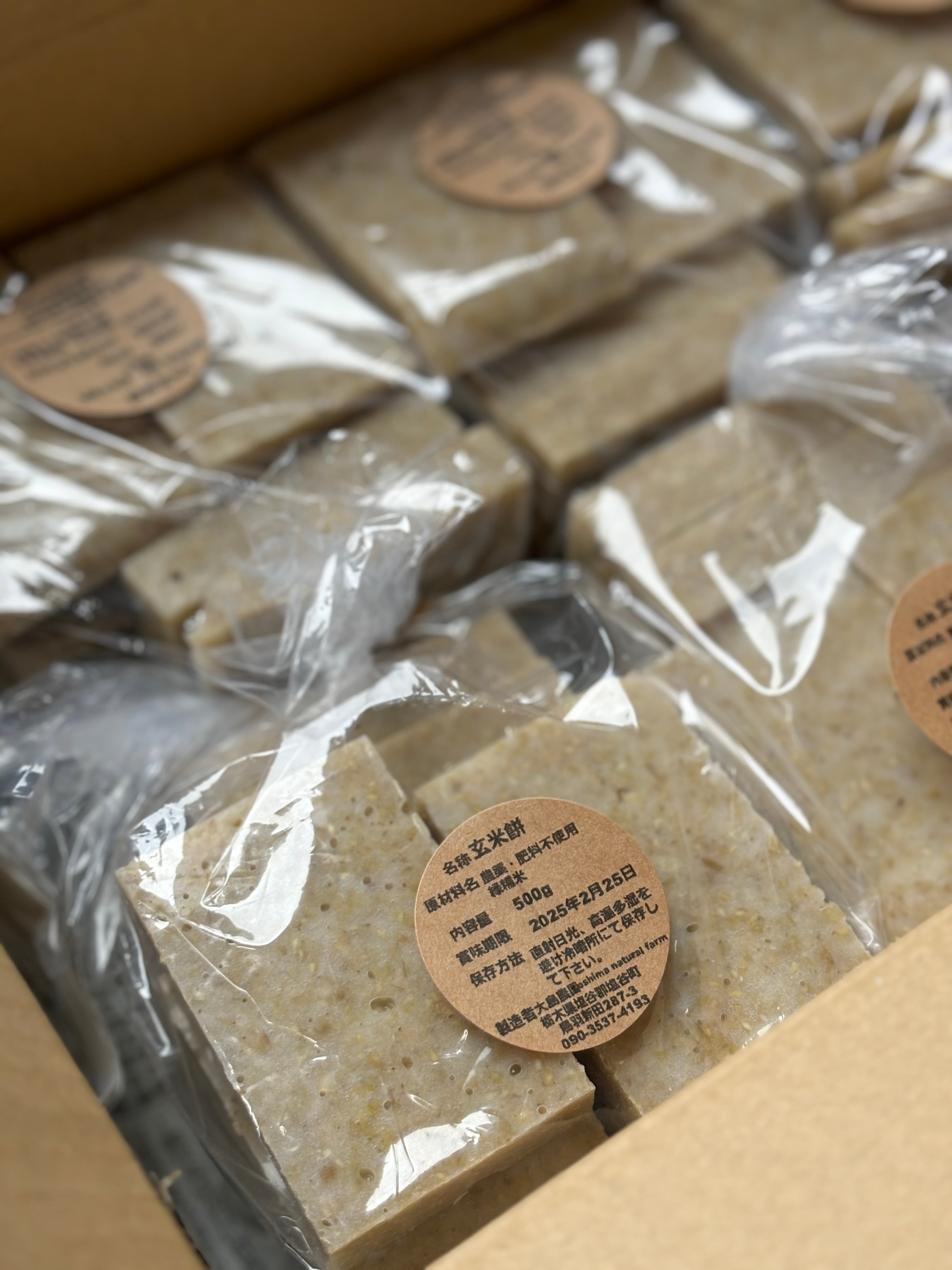 - 自然栽培の古代米で作られる大人気の「玄米餅」。