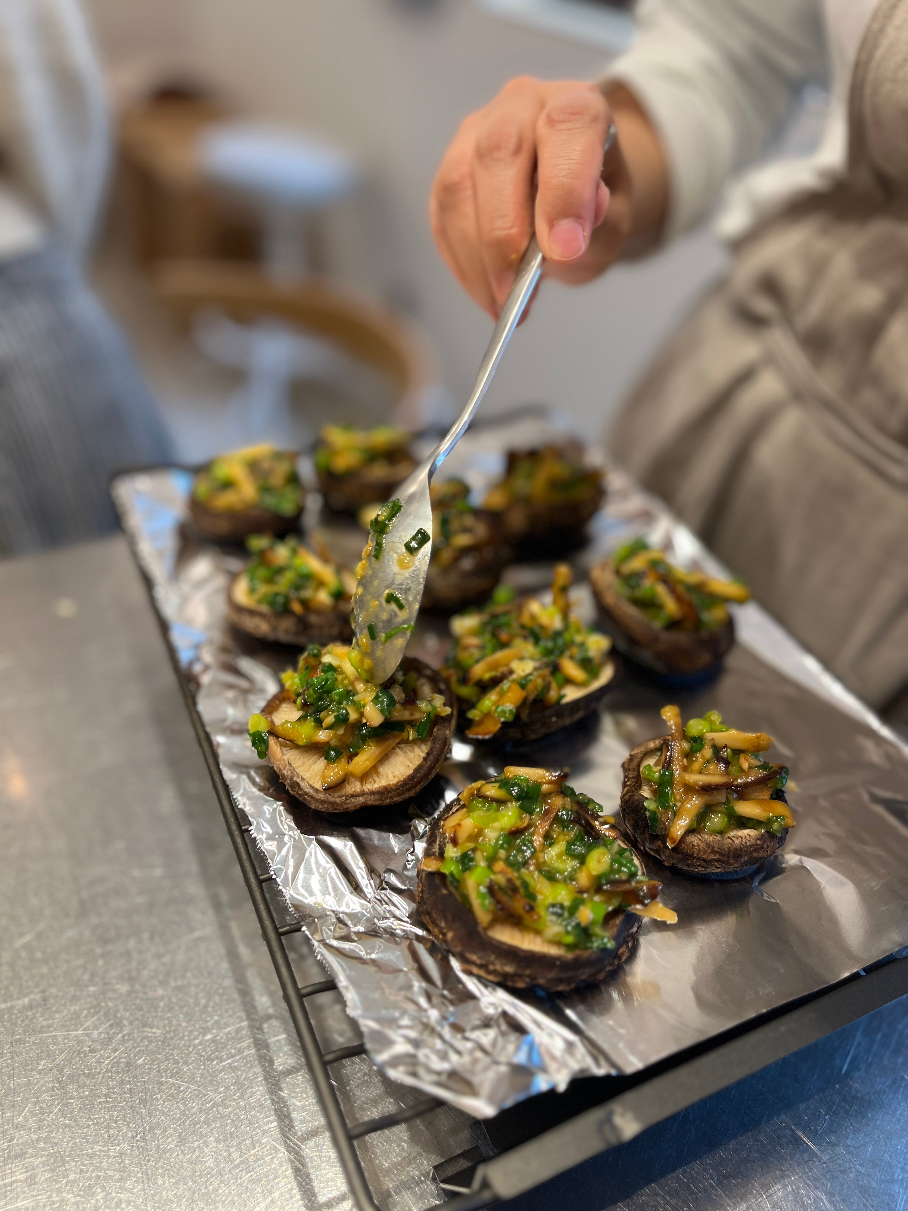 フライパンで油を引かずに焼いてください。軸を上に向けて傘のヒダ部分に少し塩をして、蓋をして焼きます。蓋を開けた時に広がる椎茸の香りと言ったら!レモンを絞ってどうぞ。「軸」も食感が良く噛むほどに味が出てくるので、細く切ってオリーブオイルで炒めて塩をパラリと振るだけでもご馳走になります。